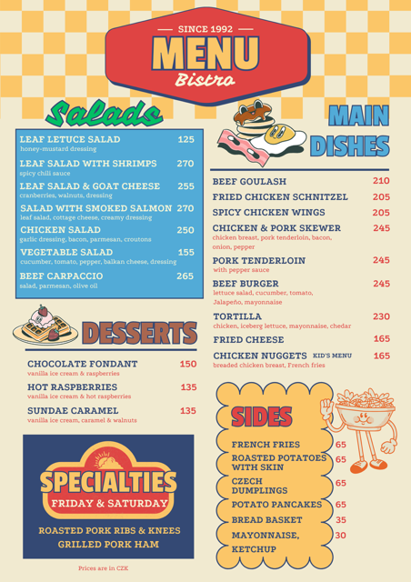 We offer a daily menu, homemade meals, and fast dishes, but we will be happy to prepare various social events with refreshments for you. We cook exclusively from fresh ingredients. Morning sale of coffee, fresh pastries, and breakfast assortment.